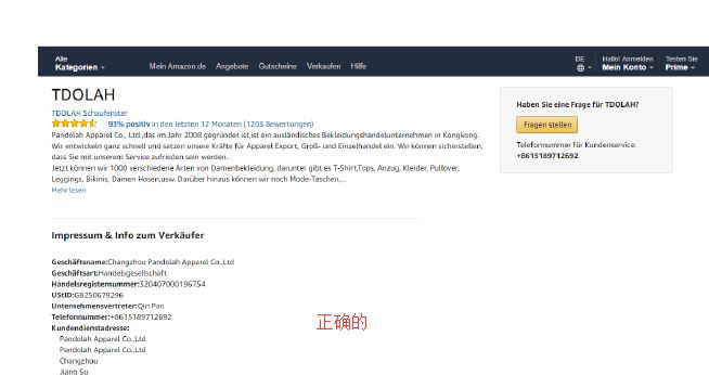 4)卖家账户信息(公司名和地址) 例如亚马逊账号可提供这个页面截图: